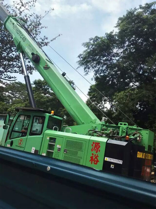 HDTC40、HDTC32、HDTC25伸缩臂履带起重机系列产品在新加坡地铁和市政等工地施工。特别适用于现场工况狭窄、须带载行走吊装作业;